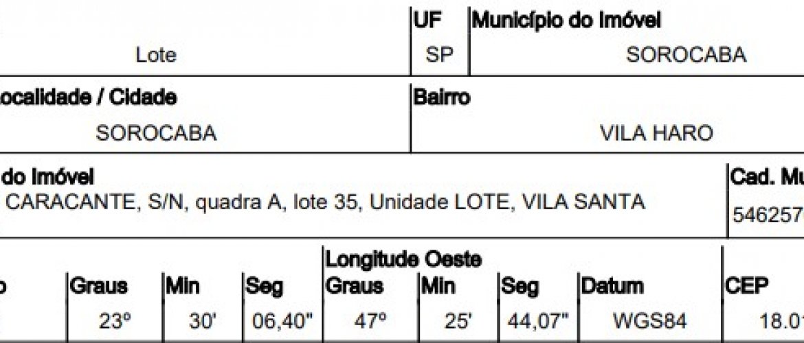Existe Ação de Execução Gravada no Av.13 da Matrícula. Regularização Por Conta do Adquirente. LOTEAMENTO SANTA THERESA